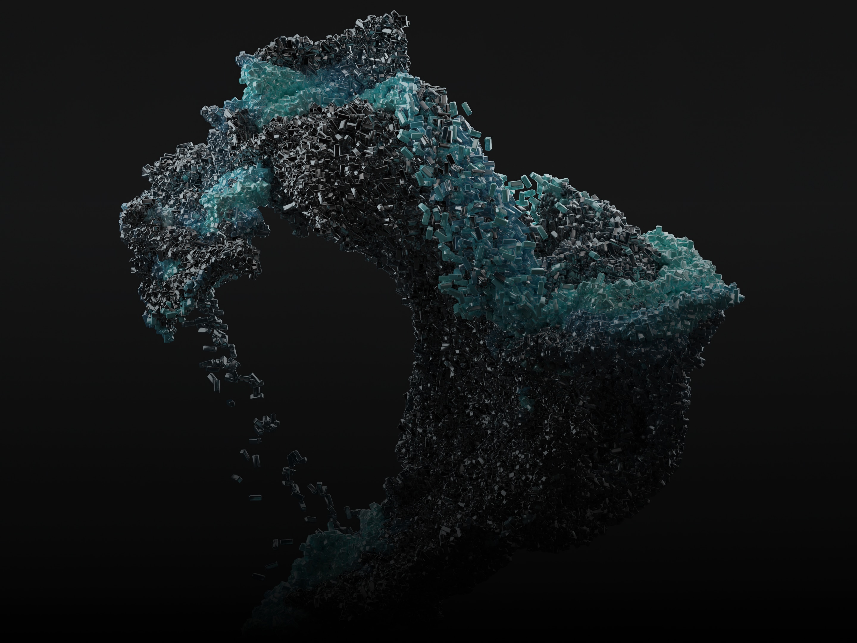 The VOICE GEMS project generates unique digital gemstones from voices. Each vocal recording is sent through the Voice Gems system of 200,000 particles, which are sculpted by assigned features such as volume, pitch and harmonics found in the data of each voice.