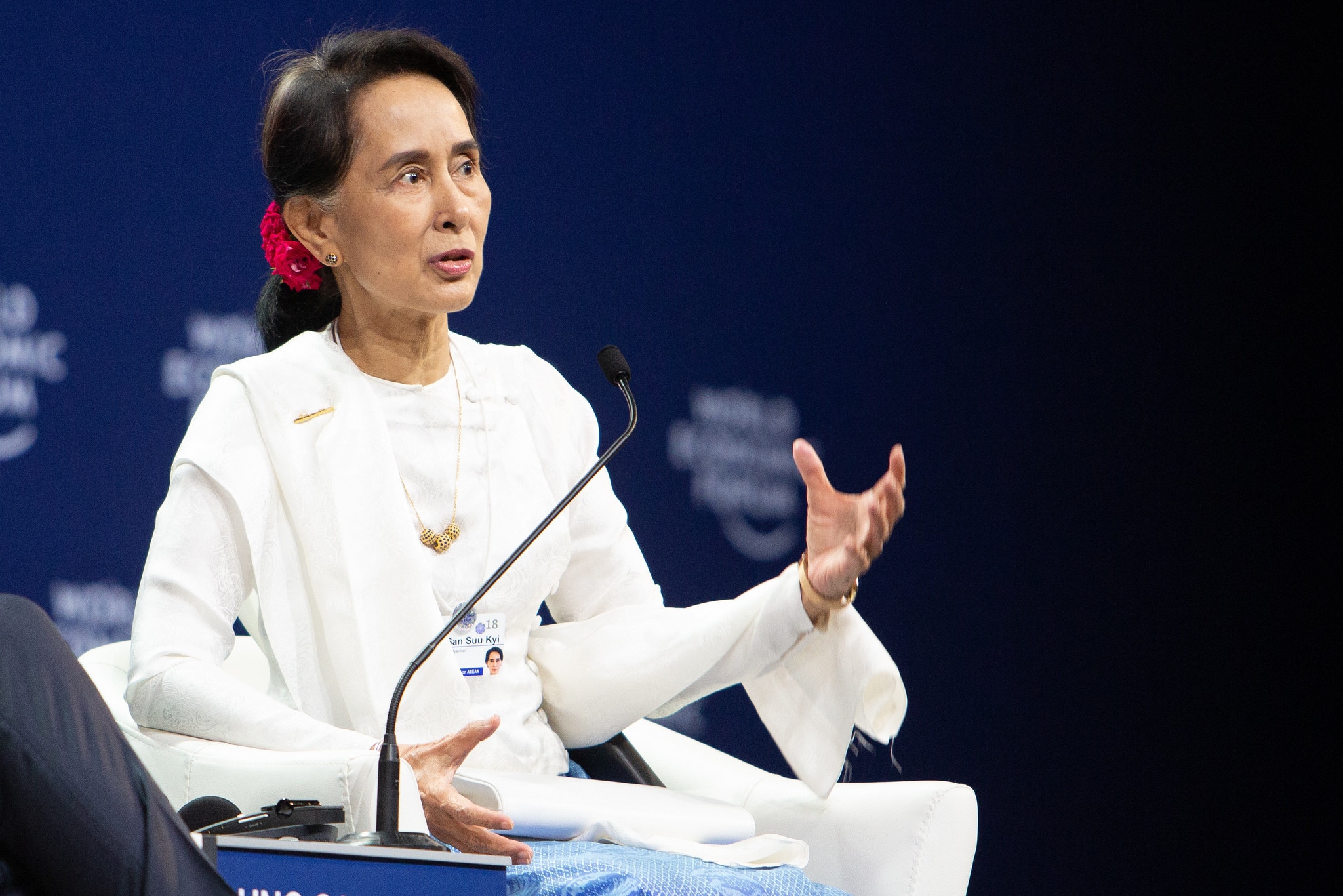 Myanmar's leader Daw Aung San Suu Kyi addressed the situation in Rakhine State, the arrest of two journalists and the transition of her country in an in-depth conversation with Børge Brende, president of the World Economic Forum.