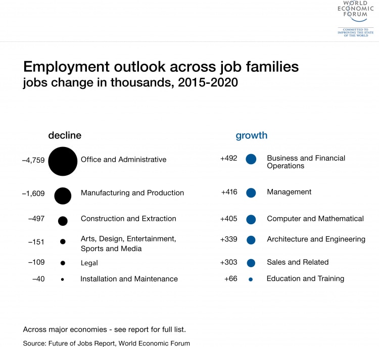James Z. Li of McKay & Co agreed that regardless of the causes, the biggest worry for most people is what it means for the world of work. “Free trade does create value, but for those who have been making cars, for example, do you think they can suddenly become IT professionals? That’s what is behind the US elections – people need jobs.” And as a 2016 Forum report noted, many of the jobs that exist today won’t be around tomorrow.