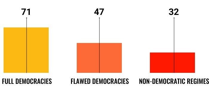 The latest Index data also points to slippage in some higher-scoring democracies over time, suggesting governance pressures are not confined to fragile contexts. Countries such as the United States (64), Canada (75), and the United Kingdom (70), as well as other parts of Europe, show downward trends, for example.