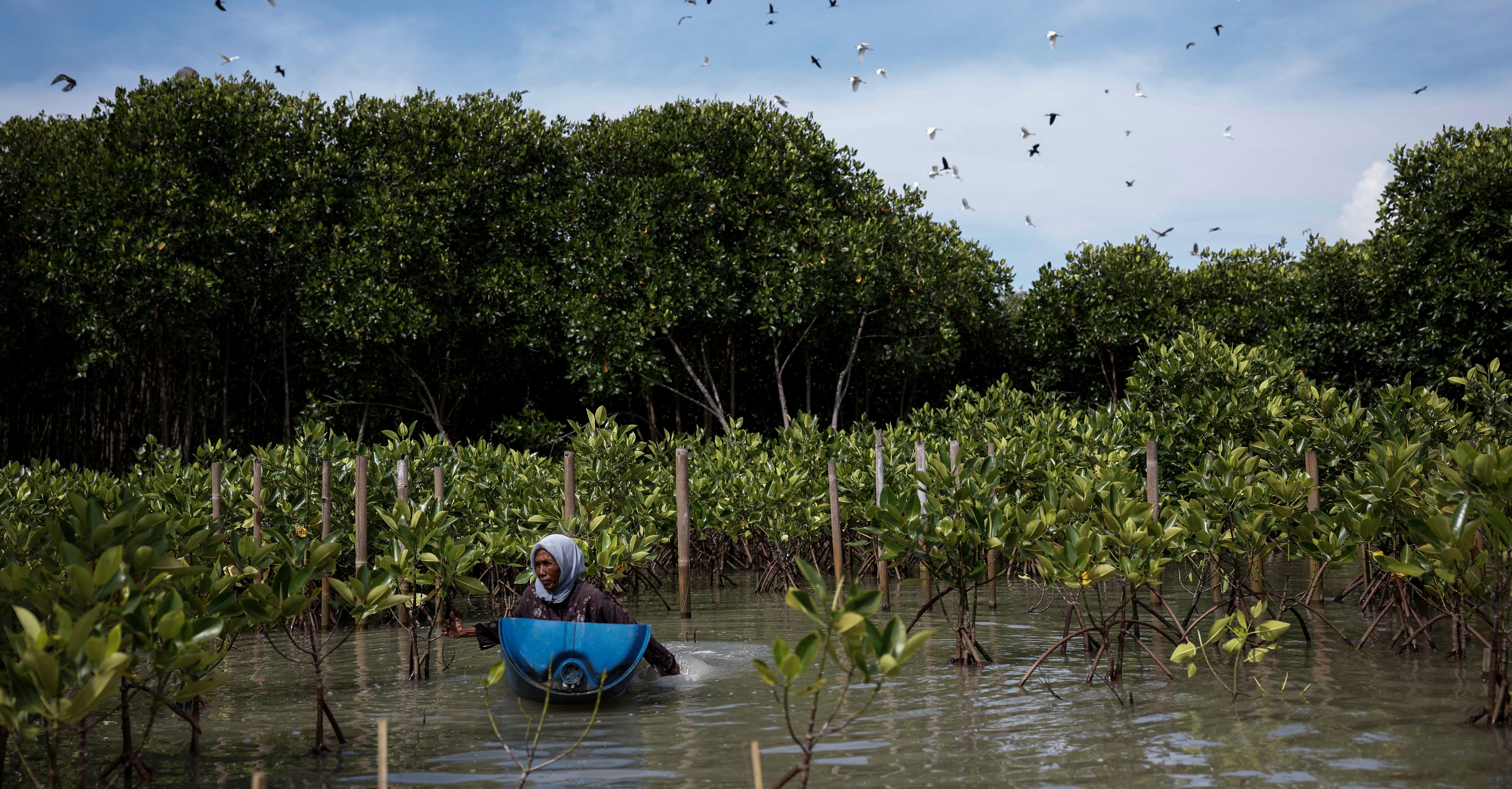 Blue carbon ecosystems such as mangroves are some of the world's most powerful natural climate solutions. Image: Reuters/Ajeng Dinar Ulfiana